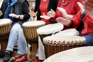 Besides being fun, drumming has been shown to speed up physical healing, boost the immune system, and produce feelings of well-being and release of trauma. Drum circles are even being used in large group activities and classrooms for people with special needs, the sick, and seniors.Drum circles also build community because they are participatory and “spotlighting” is generally frowned upon. They are also fairly inexpensive because you don’t need fancy drums. In fact, some interesting sounds can be made from found materials! Body percussion is also another way to get some drum therapy!