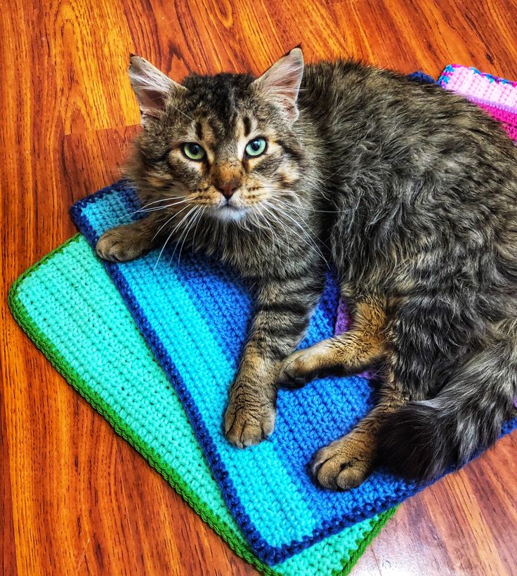 Volunteering is a wonderful and empowering way to spend your time, but it can quickly become all-consuming, even for those of us who are retired (or semi-retired). “I am so happy that I can volunteer and do some self-care at the same time. In the last few years, I have really needed to ensure that I am prioritizing myself. Filling my cup with the activities and people whom I love is my form of self-care (even when it doesn’t involve crochet or yarn shopping, lol!). Life is about balance. I truly believe that when we are blessed with a good life, we need to give back. When I work on my volunteer projects, I am also reminded that not all animals’ lives start out the best, but we can help change that. My cats are all from rescues (I have five), and it is a great feeling to know that some little kitty’s life has been made better because of me, and the blanket they have to sleep on will bring them comfort in a world where they most likely had a rough start.”