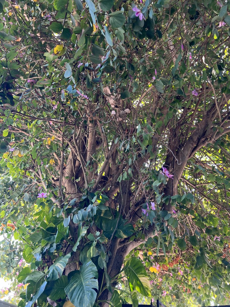 It is obvious why this little guy is called a cinnamon hummingbird. It really does remind me of cinnamon. This bird is small and, of course, cinnamon in colour. Its tail is a bit fork-shaped, and its wings are short and dark. It has the distinct hummingbird bill. It loves the flowers in the tree. The strange thing is that in the four winters we have rented this house, I have never seen the hummingbird. I know I would have noticed it.